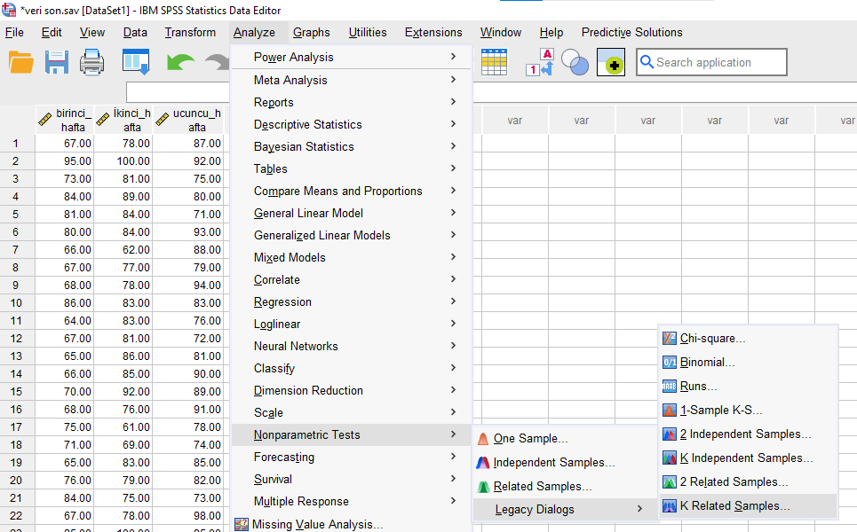 Aşağıdaki adımları takip ederek SPSS’te kolayca Friedman Testi uygulayabilirsiniz.